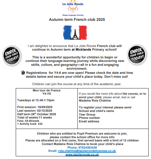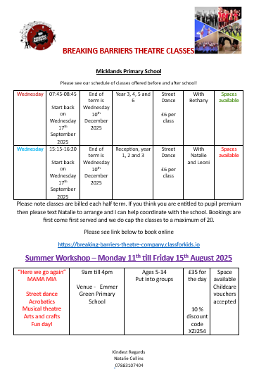 Y 3 – 6 Pupil premium places will need to be booked on this link.
